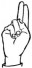 На ћирилици написано АНДРИЈА СЕКУЛОВ састоји се из 14 слова [?]. Исписано ћириличном једноручном азбуком за глувонеме: